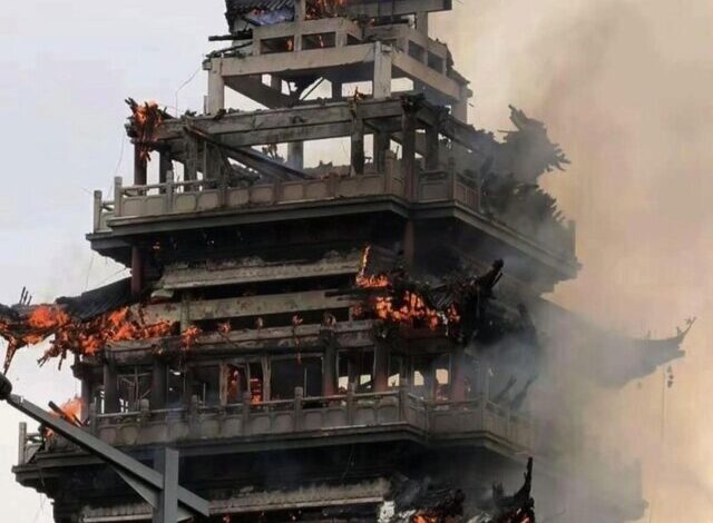 معبد ۱۵۰۰ ساله بهطور کامل در آتش سوخت/ عکس
